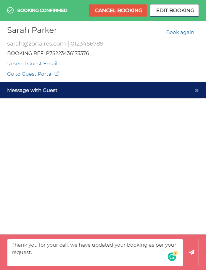 Select the guest’s name on the Dashboard or the Bookings screen.