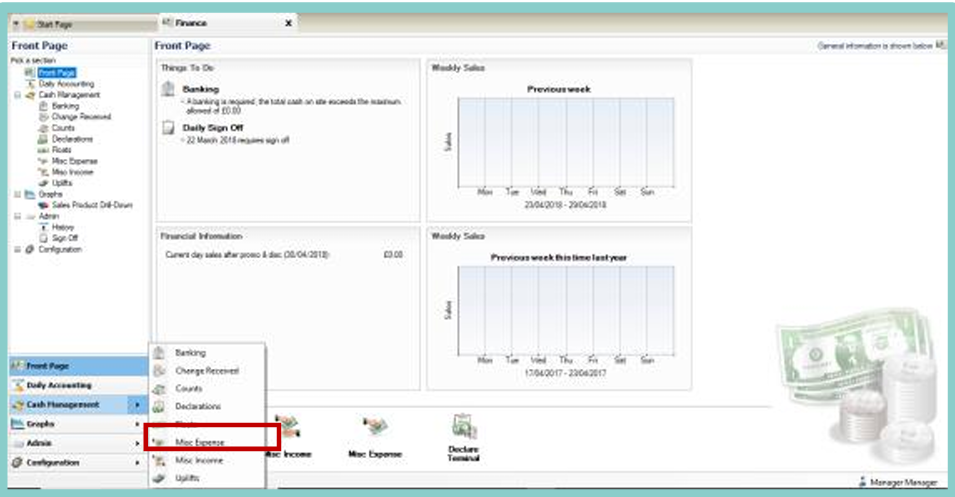 Select Cash Management and Misc Expenses from the dropdown list