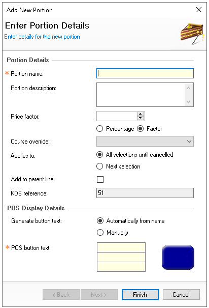 | POS Button Text | The override name of the portion if set to manually configured |