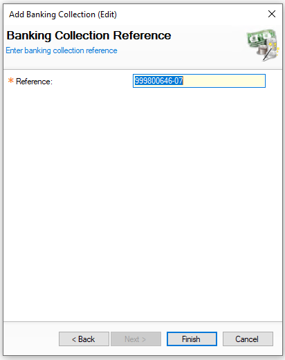 | Click Add Banking Collection | Select Bankings | Click Next | → | Enter the Reference | Click Finish | |||