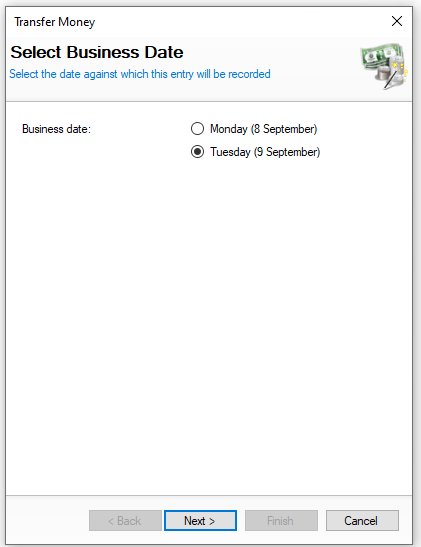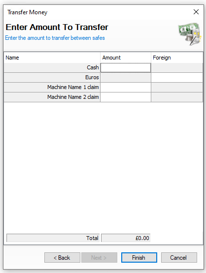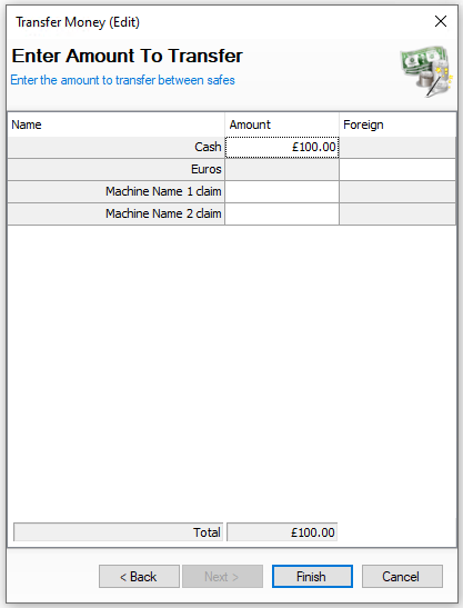 | → | Enter the Amount to Transfer | Click Finish | ||||