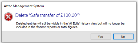 An entry can only be deleted if the back of house operator has permission configured against their job role to delete safe transfers