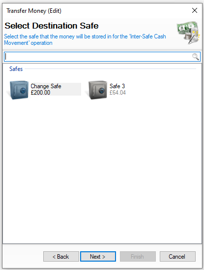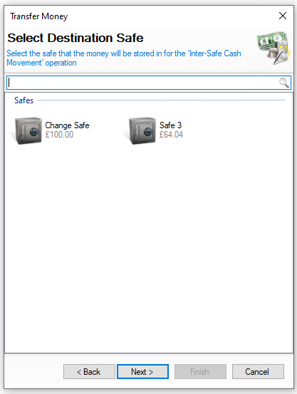 When multiple safes are set up, the safe transfer function allows money to be moved between them as needed for operational or procedural purposes.