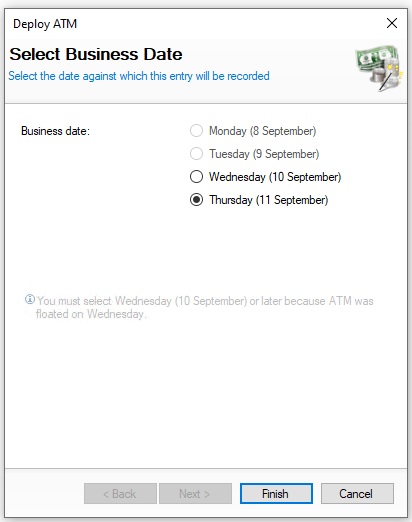 | Click Deploy ATM | Select the ATM Deployment Date | Click Next |