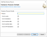 When carrying out selected onsite tasks in the Finance module, any variance must be accompanied by a selected reason to record the type of variance.