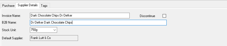 In this example the chocolate chips are counted in 750g bags but are purchased in boxes of 12 x 750g bags