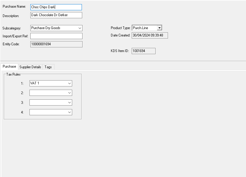 Purchase lines are a product type used exclusively for purchasing and as recipe ingredients. They contain supplier purchase information but are not intended for direct sale, and are most commonly used for food ingredients. Across the Zonal ecosystem, purchase lines appear in purchasing and stock related modules, as well as within product modelling.