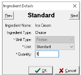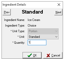 If there are multiple portions for the selected recipe click Next and complete the required mapping, alternatively click OK to complete the addition of the choice