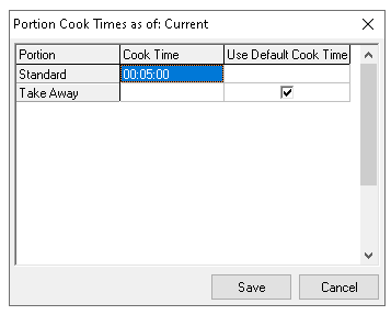 Cook times are used to correctly stage orders with kitchen management systems, by default alternative portions will inherit the default (standard portion) cook time but this can be adjusted by deselecting the check box and adding in specific times per portion. For more information on cook times in Kitchen iQ click here -