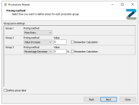 Selecting 'Remember Calculation' will keep the promotion synced with any changes made to product prices in the price matrix, if the price changes the calculation will be based on the updated price, if not selected the prices will be retained at the price when the promotion was createdZonal recommends if there are groups where the price does not change in the promotion to set the group to be value increase and leave the value as 0 -