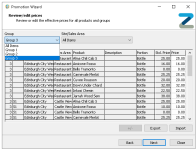 Optionally if price configuration by portion mapping options are required they can be added, or click Next | the Review / Edit Prices screen is displayed