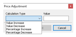 Value Increase / Decrease - when selected prices will be automatically calculated by the monetary value entered