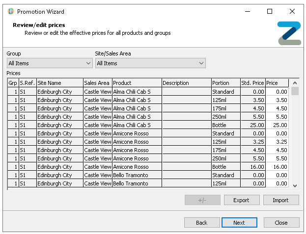 Click Import - the prices changes made will be imported