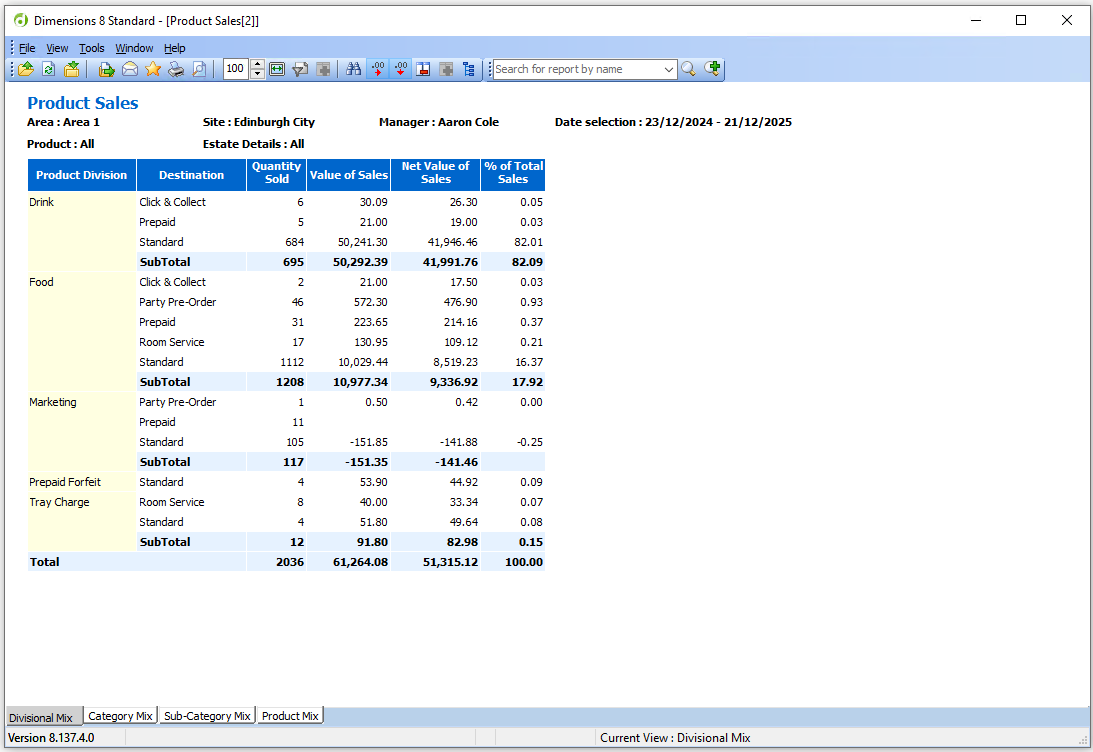 Divisional Mix | Category Mix | Subcategory Mix | Product Mix