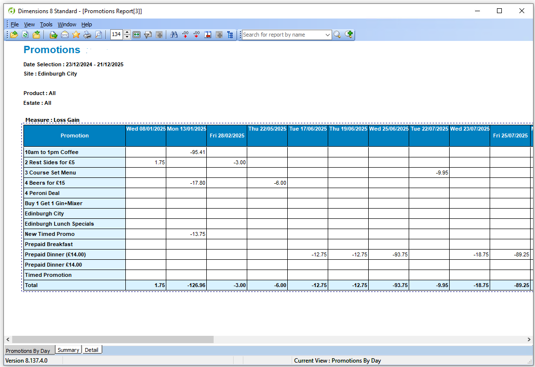 In this example the 7 day statement of trade has an option to 'Show Promotions Report' which will open and display the promotions report for the selected period