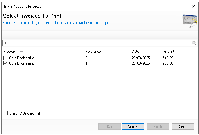 Select the required Invoices to issue| click Next