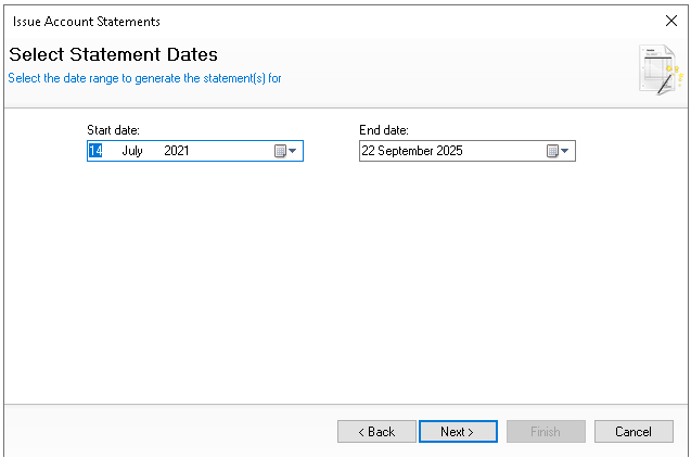 Select the required Statement Period - Start and End Date to issue | click Next