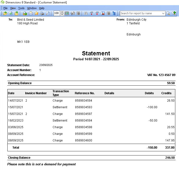 Statements and invoices are usually printed on site, but when using Aztec Head Office they can also be produced centrally.