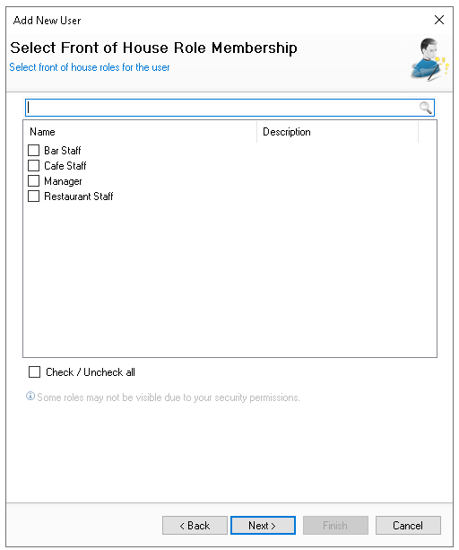 Select the required Front of House Roles