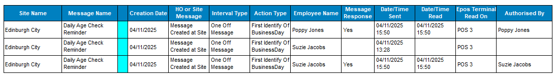 Any new messages will require a comms job to be run to send messages to siteThe message will automatically display on the point of sale terminal based on the settings configured