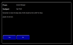 Each message displayed on the point of sale and answered with Yes or No can be tracked and reviewed through the reporting module (Dimensions).
