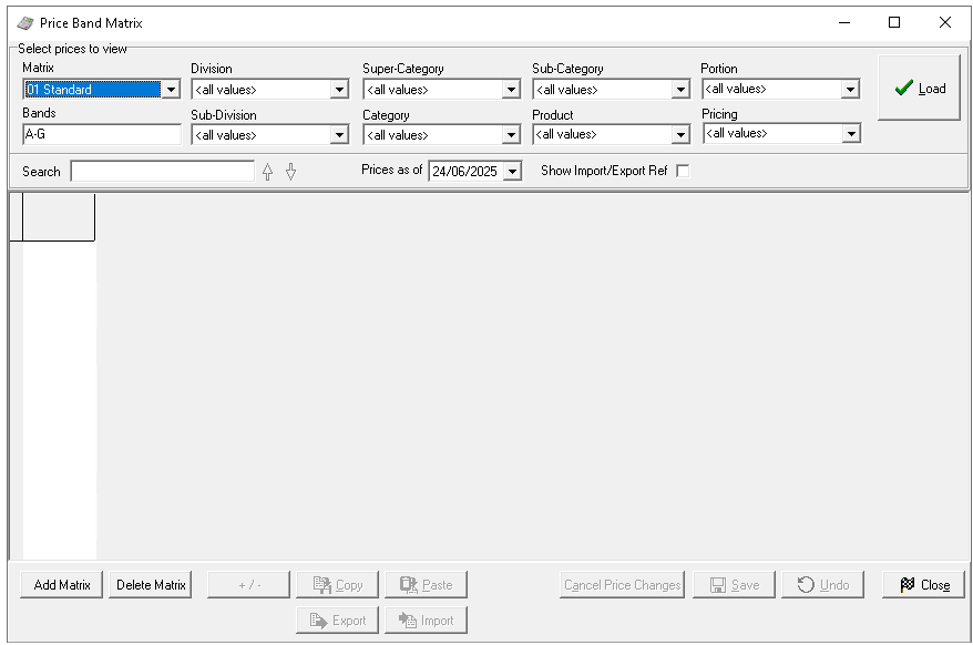Load the price matrix with price bands that include the products that were selected within the original export