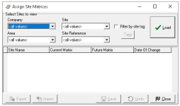 As an alternative to managing future changes directly within the site matrix, the data can be exported to a spread sheet, adjusted as needed, and then re-imported into the system.