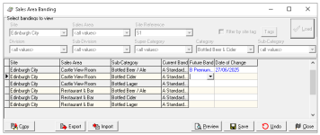 Load the Sales Area Banding with sites, sales areas and subcategories including those that were selected in the original export