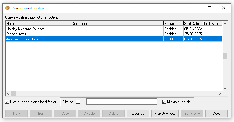 Repeat the update for promotional footer text for each override added