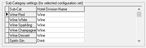 Hotel divisions are assigned to subcategories on a per config set basis, hotel divisions are used for PMS integrations and product group summaries on bills and receipts.