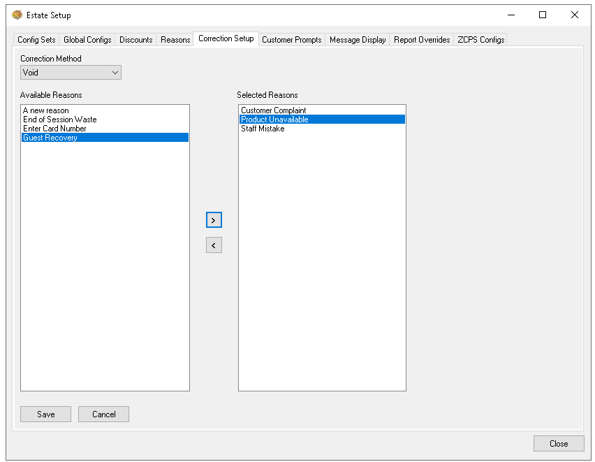 When performing corrections through the point of sale terminal a reason can be selected which provides additional layer of reporting and insight.