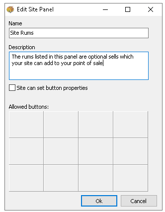 The size of the site panel will determine the amount of space onsite they have when adding products to this panel, the initial size is 1 x 1 button meaning only 1 button could be addedIn this example the site panel has been resized to fill the bottom section of this shared panel -