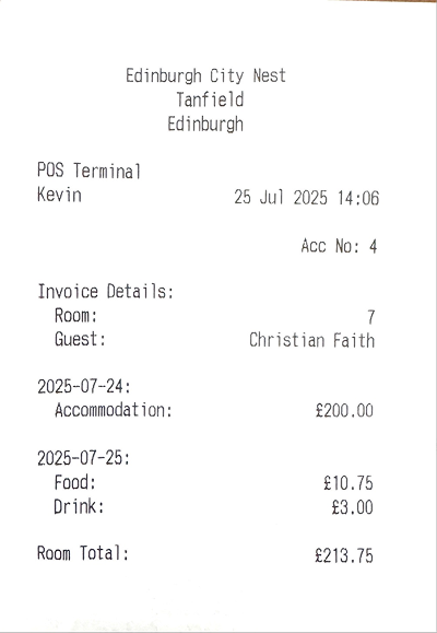 Zonal recommends using the print option if a guest would like a summary of their charges, they will receive a full tax invoice from the PMS when the check out has completed